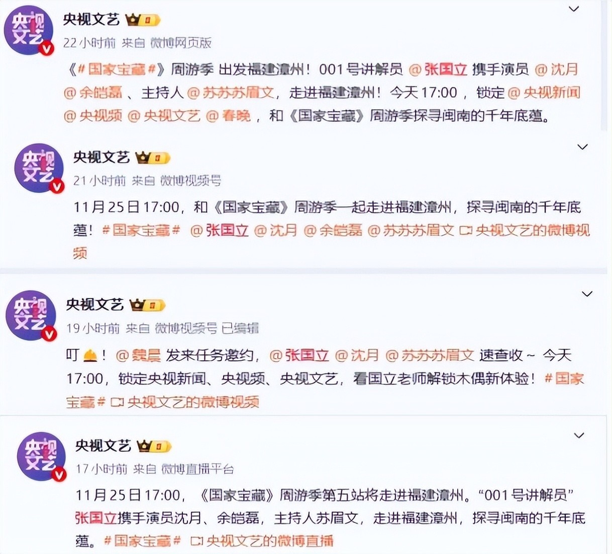 正是这份执着,使《国家宝藏》成为全民追捧的文化现象,也让张国立被誉为“国宝守护人”。11月25日,央媒在24小时内四次提及他,并非偶然之举。